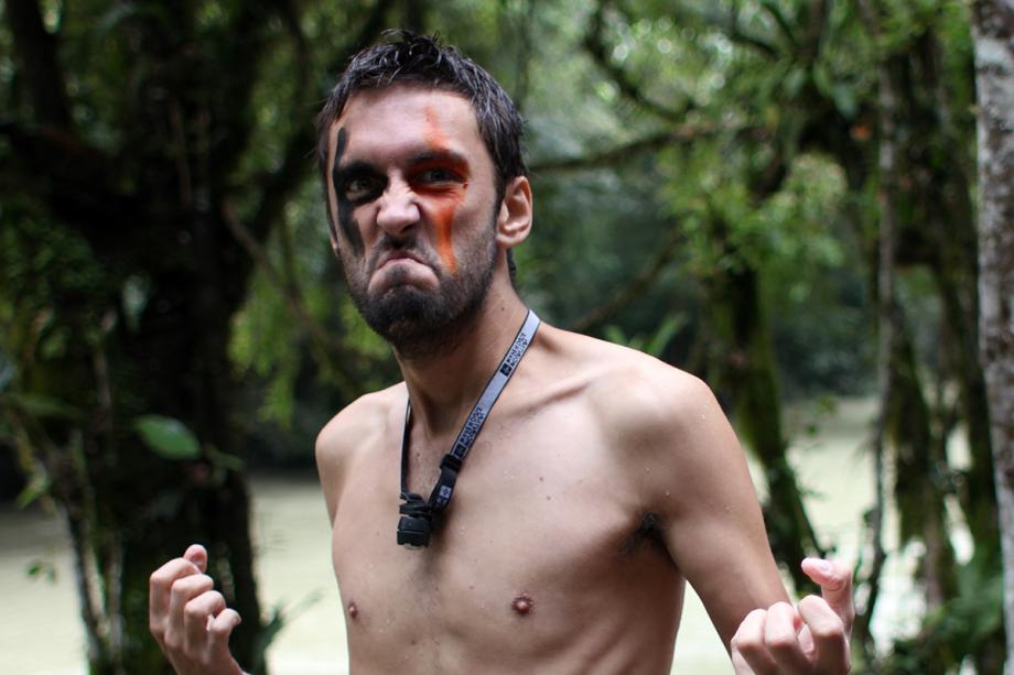 Just after I got out of the cave. On my face is some red plant juice and some dirt from a cave wall … shortly afterwards I wrestled a bear!