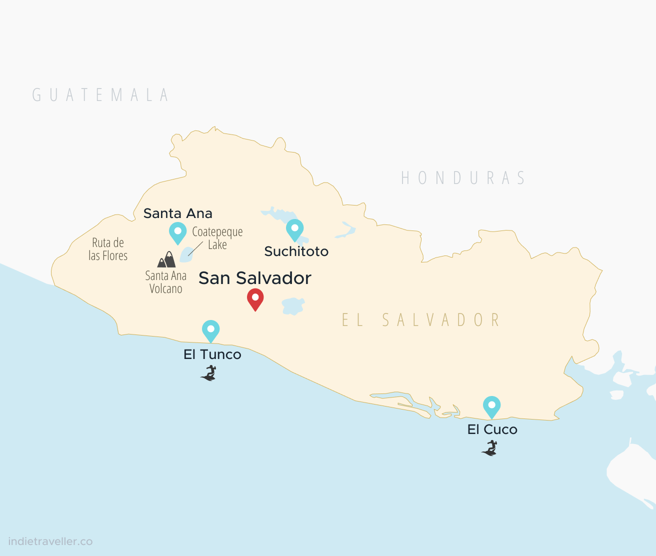 Below is my recommended itinerary for the country. If you’re arriving from Guatemala or Honduras, Santa Ana is the logical spot to start your journey. If you’re coming by air or from Nicaragua, then reverse the below suggestions, as you will likely be starting in San Salvador or El Tunco.