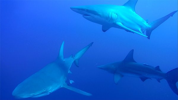 I’m 10 meters underwater, out in the open ocean, and I’m surrounded by hungry sharks.