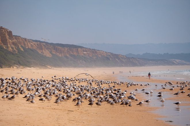 The Sado Estuary south of Lisbon is home to several shoals of playful bottlenose dolphins. Since this is their permanent territory, you are almost guaranteed to see them on a dolphin watching tour.