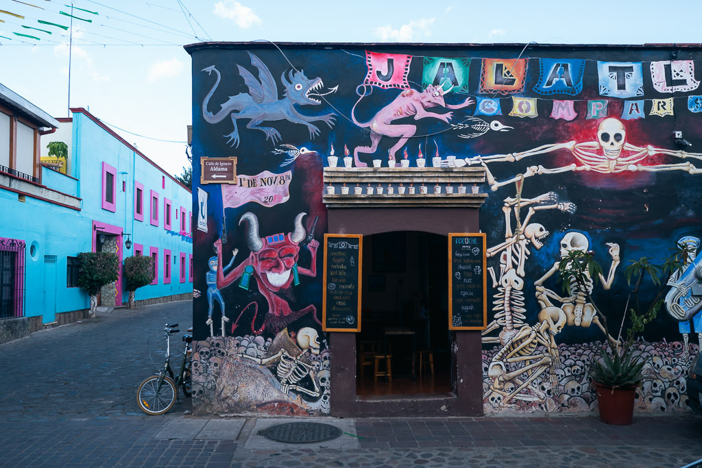 Afterwards, you’ll want to walk along the Andador Turístico (the actual street name is Calle Macedonio Alcalá), which is home to many craft markets, street art, and colorful settings that are perfect for a photo. It’s also a good place to pick up a traditional Oaxacan souvenir, such as handmade ceramics or a bottle of Mezcal.